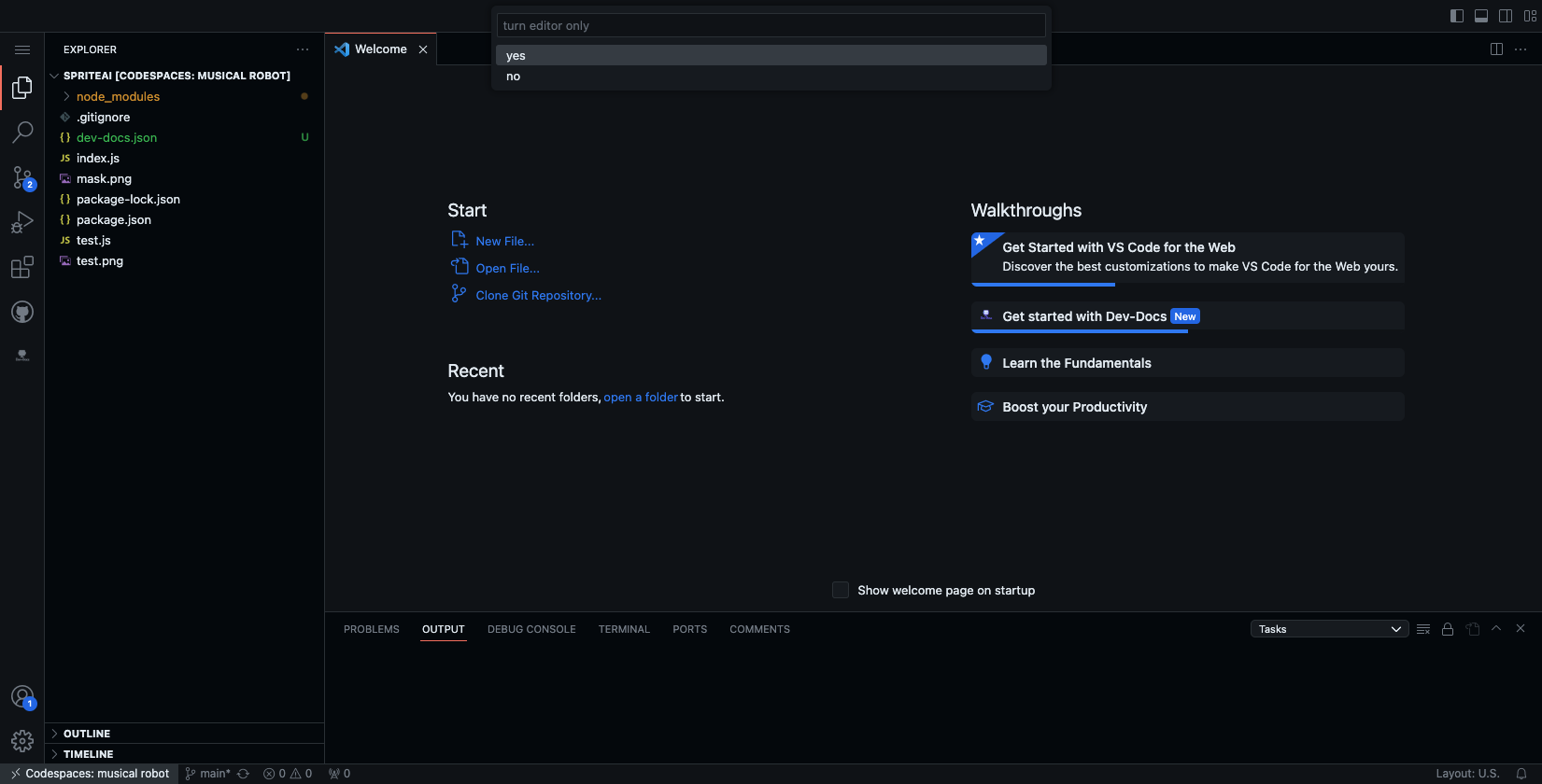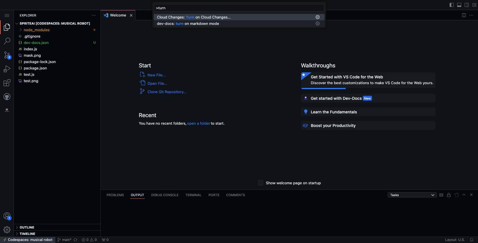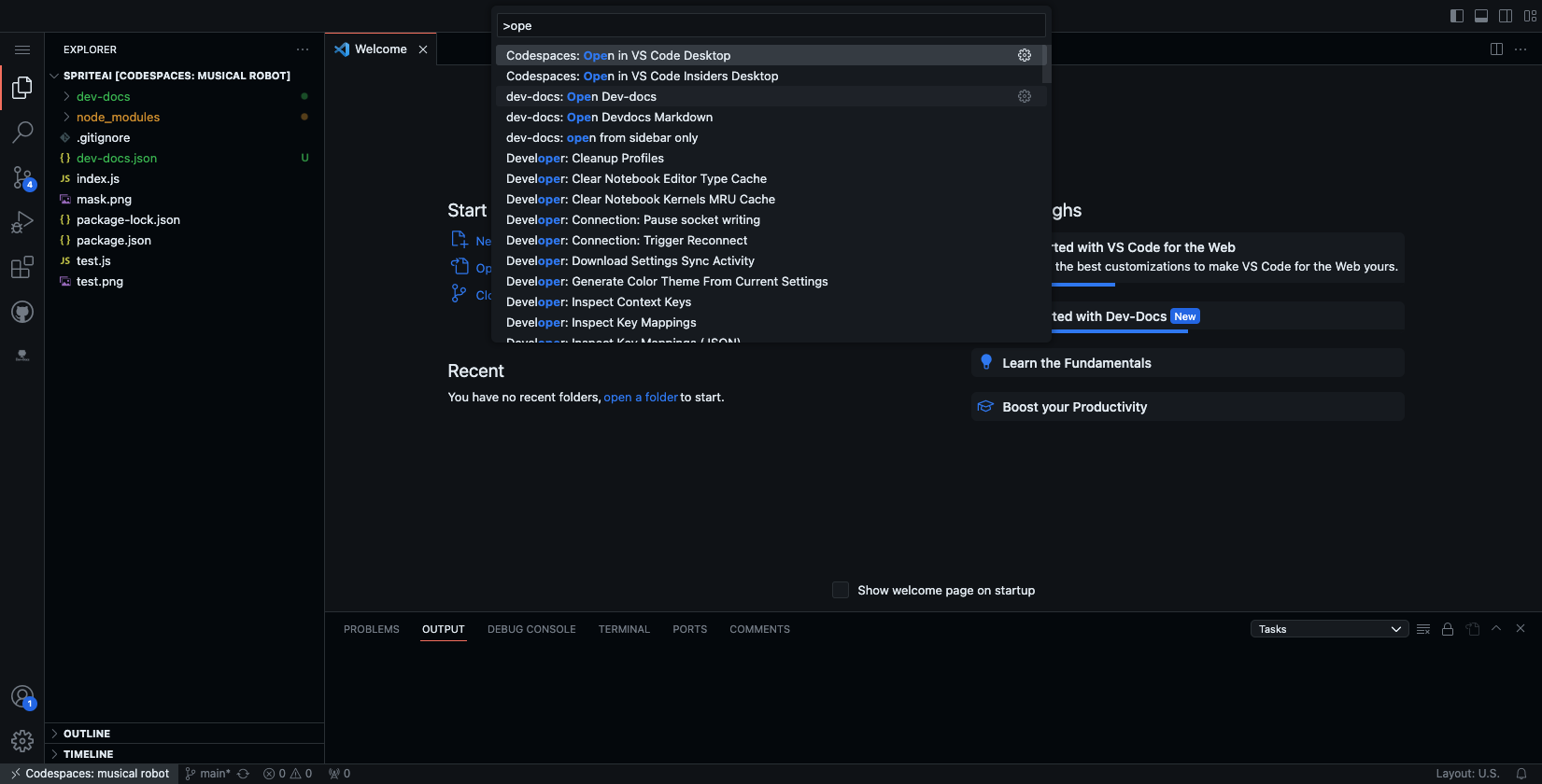 Now lets hit shift command p and find/click the command Open Dev-docs.