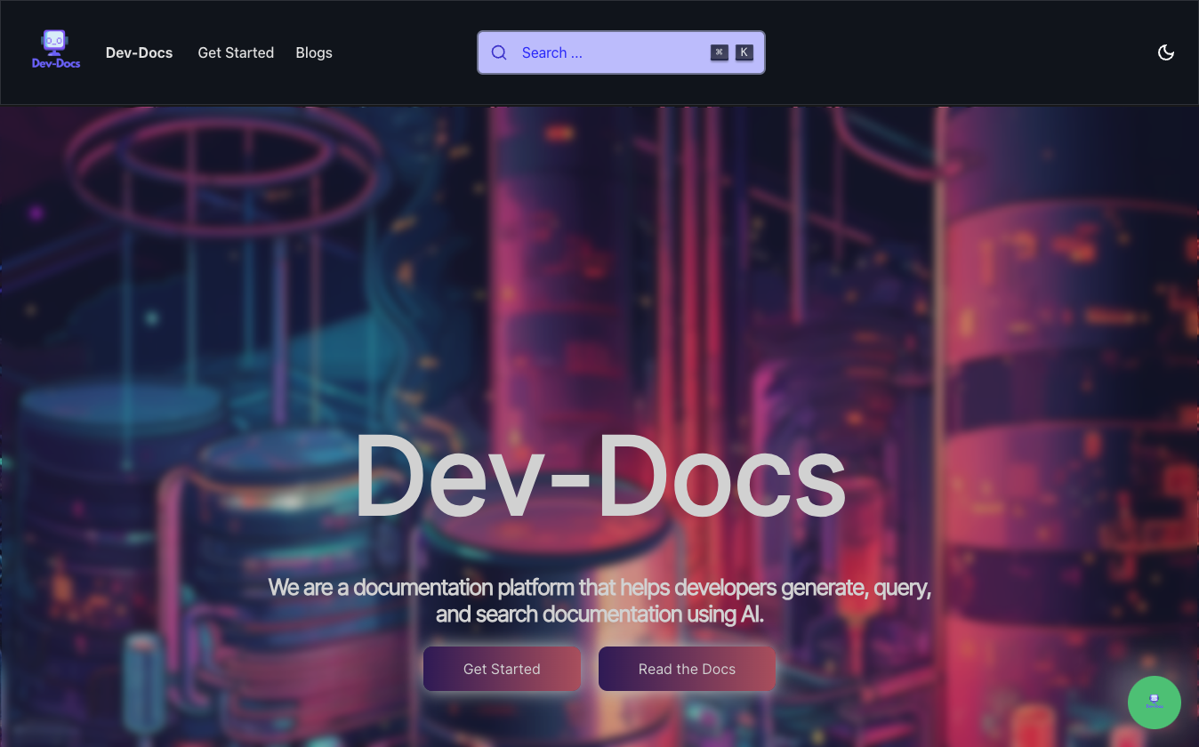 Also a new tab should open that shows your running Dev-Docs repo like below.